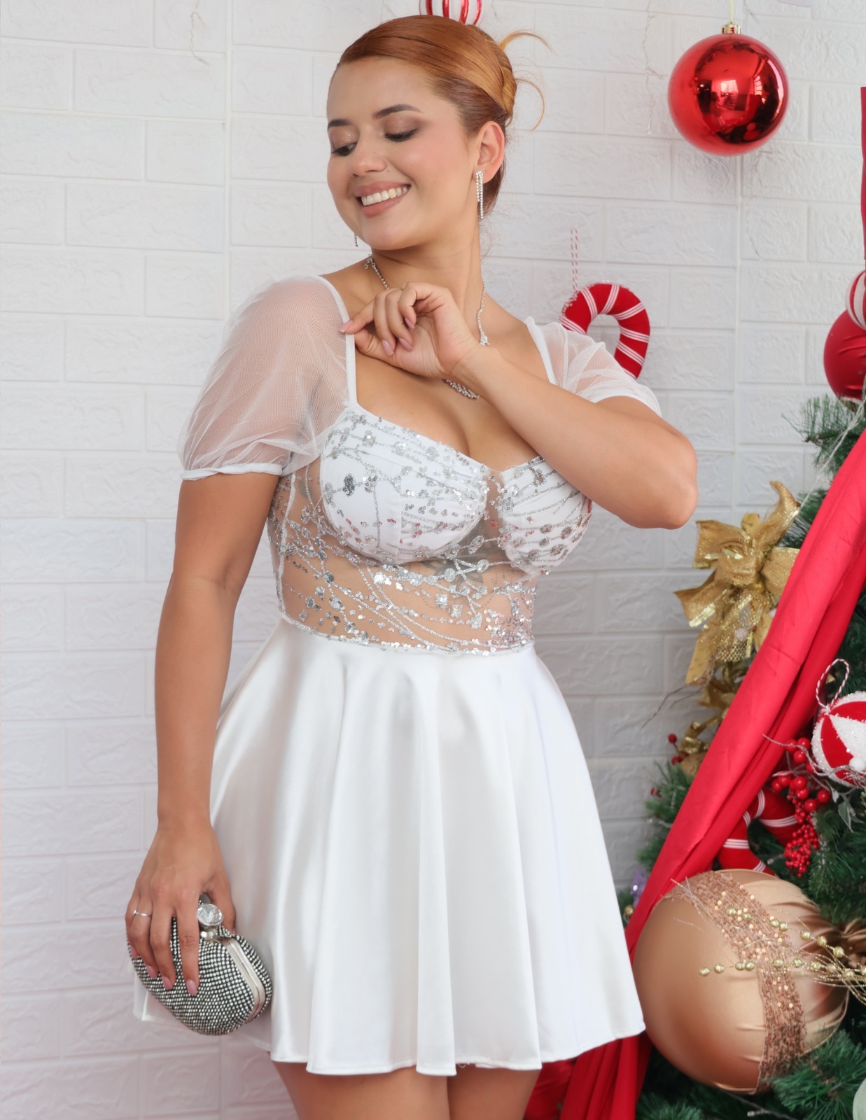 ✔ Parte superior en tul brillo con detalles bordados y lentejuelas que destacan la silueta.